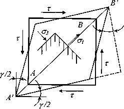 Касательные напряжения вызывают угловые деформации, причем при малых деформациях они не влияют на изменение линейных размеров, и следовательно, на линейные деформации. Поэтому они справедливы также в случае произвольного напряженного состояния и выражают так называемый обобщенный закон Гука. Угловая деформация