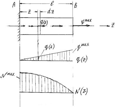 Рис. 17.5. Из расчётной схемы на рис. 17.5 следует, что от действия центробежных сил инерции возникнет нормальная сила N(z). Уравнение равновесия запишется в следующем виде: