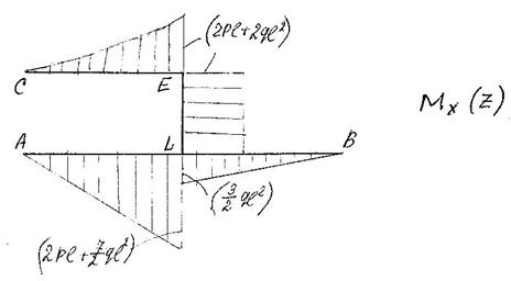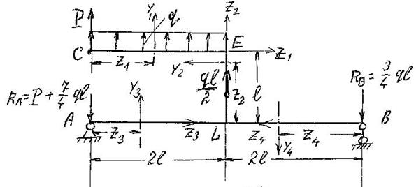 0=0. Положительные знаки реакции указывают на то, что мы «угадали» их направления. Построение эпюры осуществим по участкам. 1-ый участок СЕ. 0≤z1≤2l. Слева от сечения: