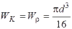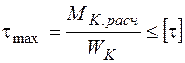 Откладывая от нулевой линии полученные значения углов поворота сечений в масштабе с учётом знака, а затем соединяя полученные точки прямыми линиями, получаем эпюру углов закручивания. 6. Вычисляем наибольшее касательное напряжение на наиболее нагруженном участке вала. Наиболее нагруженным является участок АВ, так как здесь наибольший крутящий момент Мк(тах) = 28 кН×м.