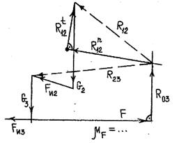 и получим реакцию во внутренней вращательной паре В 3.7. Точкой приложения силы