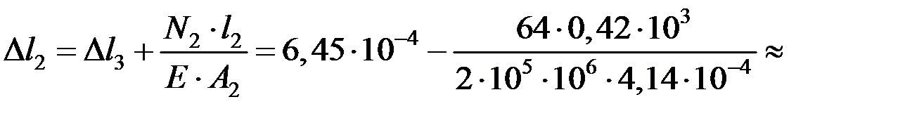 Перемещение верхней границы третьего участка равно сумме удлинений четвертого и третьего участков: