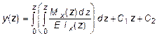 Если балка имеет n - конечное число участков, из 2 n числа граничных условий получим 2 n алгебраических уравнений относительно 2 n постоянных интегрирования. Если момент и жесткость являются непрерывными по всей длине балки функциями Mx (z) и E Ix (z), то решение может быть получено, как результат последовательного интегрирования уравнения (5.19) по всей длине балки: интегрируя один раз, получаем закон изменения углов поворота