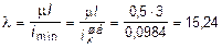 По табл. 5 находим значение j для полученной гибкости: при l = 10 j = 0,99; при l = 20 j = 0,97. Для l = 15,24: