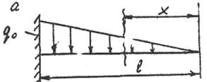 Произвольное значение распределенной нагрузки q(x) находим из подобия треугольнико через заданную величину q0 рис 1.а.