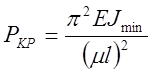 где Jmin- минимальный момент инерции поперечного сечения стержня; m - коэффициент приведения длины (см. табл. I).