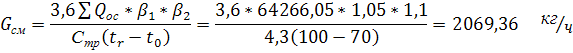где Т1 - температура перегретой воды теплофикационной сети, оС; tг, - температура горячей воды системы отопления, оС; tо - температура охлажденной проектируемой отопительной системы, С. Определение количества смешанной горячей воды: