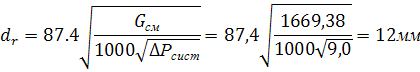где ΔPc ист - гидравлическое сопротивление отопительной системы; определяется расчетом трубопроводов (см. ниже), Размер диаметра сопла элеватора вычисляем по формуле: