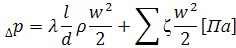 где Δ P - потеря давления сопротивления на рассматриваемом участке трубопровода, Па; λ’- коэффициент сопротивления трубы движению теплоносителя; l - длина рассчитываемого участка, м; d - искомый диаметр рассчитываемого трубопровода, м; ρ - плотность теплоносителя, кг/м3; ω - скорость движения теплоносителя в трубе, м/с; ζ - коэффициент динамического, местного сопротивления Гидравлический расчет выполняется в табличной форме(см.табл.3)