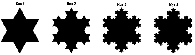 Рис.7. Снежинка Коха, первые 4 итерации.