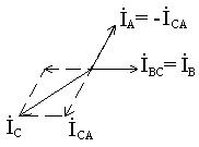 Линейные токи через фазные могут быть выражены по 1 закону Кирхгофа: