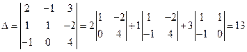 Для решения этой системы вначале необходимо вычислить ее определитель: