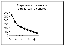 Рисунок 2 Рис.2 Для оформления офиса фирма приобретает живые и искусственные цветы. Цена за единицу товара 4 и 11 условных денежных единиц соответственно. С определенной регулярностью фирма приобретает 8 живых цветов и 3 искусственных. Общая полезность приведена в таблице 3. А) Каковы расходы фирмы? Б) Какую полезность она получает от потребления такой комбинации товаров? В) Рассчитайте предельную полезность, получаемую от потребления живых и искусственных цветов? Г) Изобразите на рисунке кривую предельной полезности искусственных цветов. Д) Можете ли вы установить, максимизирует ли фирма полезность? Е) Какую полезность она получит, если все средства будет тратить на покупку искусственных цветов? Ж) Рассчитайте отношение предельной полезности к цене для каждого из товаров. З) При какой комбинации двух товаров полезность окажется максимальной? Таблица 3