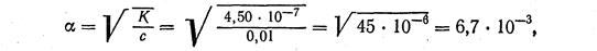 В такой форме полученное уравнение выражает закон разбавления, выведенный В. Оствальдом. Он устанавливает зависимость между степенью ионизации слабого электролита и его концентрацией. Если электролит является достаточно слабым и раствор его не слишком разбавлен, то степень ионизации его (а) мала и величина (1 - а) мало отличается от 1. Следовательно, можно принять, что