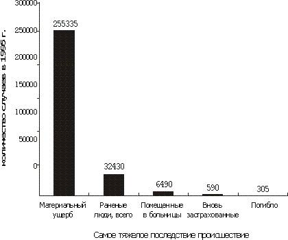 Количество происшествий с материальным ущербом меньше, чем количество случаев материального ущерба, поскольку во многих происшествиях с материальным ущербом, в среднем, участвует не одна сторона. Elvik и Muskaug (1994) в 1992 г. рассчитали количество происшествий только с материальным ущербом равным округленно 125000. В 1992 г. в страховые общества было заявлено 220669 случаев с материальным ущербом. Другими словами, в среднем приблизительно 1,75 транспортных средств участвовало в каждом ДТП с материальным ущербом, заявленным в страховые общества. О количестве происшествий с материальным ущербом, которые не заявлялись в страховые общества, имеется немного сведений. В опросе о взаимосвязи между манерой поведения и происшествиями (Assum, Midtland og Opdal, 1993) контингент водителей легковых автомобилей сообщил о 7,8 млн. происшествий на миллион пройденных километров. Эта цифра относилась приблизительно к 1990 г., когда количество пройденных километров легковыми автомобилями составляло 22000 млн. км. Указанный риск соответствует приблизительно 170000 происшествий в год на легковой автомобиль. Количество случаев материального ущерба на легковой автомобиль и автофургон, заявленных в страховые общества в 1990 г., составляло менее 183000 (Hagen, 1991), однако, неизвестно, сколько из этих случаев приходилось на автофургон.