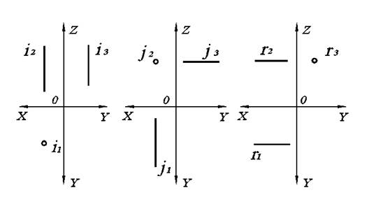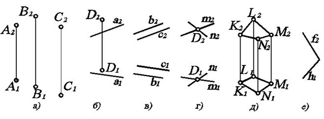 Рис. 3.1. Безосный двухкартинный комплексный чертеж геометрических объектов, задающих плоскость.