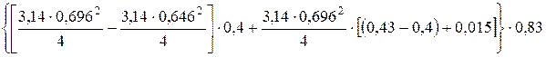 где с – теплоемкость воды, 4,19 кДж/(кгּК); m – масса заливаемой воды в варочный сосуд, кг; tк, tн – соответственно конечная и начальная температуры воды, ºС 2. Потери теплоты на испарение (Qисп) с уходящим из котла паром определяются по формуле Qисп = ΔWּr кДж, где ΔW – количество испарившейся воды, кг; r – теплота парообразования, 2256 кДж/кг. Количество испарившейся воды за час работы котла с негерметизированной крышкой принимаем, на основание экспериментальных данных, равным в период разогрева 0,5 %, а в процессе варки – 1,5% от массы воды в варочном сосуде. Тогда потери теплоты на испарение составят Q Q 3. Потери теплоты на разогрев конструкции котла (Qраз) состоят из потерь теплоты на нагревание металла (Q Qраз = Q Масса котла принимается 195 кг как среднее значение исходя из масс серийных котлов КПЭ и КПЭ-НГ аналогичной емкости варочного сосуда [5]. Принятая масса состоит из металла и изоляции. Для определения массы изоляции необходимо ее объем умножить на ее плотность 250 кг/м3 (табл. 6.7). mиз = Vизּρиз = Соответственно масса металлических конструкций составит 195 – 1,4 = 193,6 кг, из которых варочный сосуд из нержавеющей стали толщиной 3 мм составляет примерно третью часть (64,5 кг) от общей массы и нагревается до температуры 100 °С. Остальные элементы конструкции изготовлены из обычной стали и имеют массу 129,1 кг. Они представляют собой рубашку и парогенератор из стали толщиной 4 мм и нагревающиеся до 110 °С, кожух и постамент из стали толщиной 1,5 мм и нагревающийся до температуры 60 °С и 45 °С соответственно, трубопроводы и арматуру практически не нагреваются, контрольно-измерительные приборы нагревающиеся примерно до 100 °С, основание – до 30 °С. Принимаем среднюю конечную температуру всех этих элементов конструкции 80 °С. Потери теплоты на разогрев металлических конструкции (Q Q При стационарном режиме изоляция будет иметь температуру со стороны наружной стенки 60 °С, а со стороны рубашки котла – 110 ºС. Соответственно средняя конечная температура изоляции составит (110 + 60)/2 = 85 °С. Теплоемкость шлаковаты составляет 0,862 кДж/(кгּК) (табл. 6.6). Соответственно потери теплоты на нагревание изоляции (Q Q Принимаем объем воды, заливаемой в парогенератор 10 л по аналогии с котлом типа КПЭ-100 [5]. Тогда потери теплоты на нагревание воды в парогенераторе составят Q Для определения количества теплоты расходуемой на заполнение паром пароводяной рубашке (Q Q где масса пара в пароводяной рубашке определяется как его объем умноженный на удельный вес (ν) при давлении 0,045 МПа (ν = 0,83 кг/м3 [2]) mп = Vпּν = Потери теплоты на разогрев конструкции котла составят Qраз = Q 10492,1 кДж. 4. Потери теплоты в окружающую среду наружными ограждениями котла (Q Q Потери теплоты определяются по формуле Q Площадь теплоотдающей поверхности (F): кожуха Fкож = πּDКּHК = 3,14ּ0,719ּ0,40 = 0,90 м2; постаментом Fпос = πּDКּНП = 3,14ּ0,719ּ0,42 = 0,95 м2; шейки определяется как произведение образующей на полусумму длин окружностей Fшей =