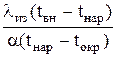 tвн – температура внутренней стенки, 100 ºС; tнар – температура наружной стенки, 55 ºС; tокр – температура окружающего воздуха, 20 ºС; α – коэффициент теплоотдачи от наружной стенки к воздуху, Вт/(м2ּºС). Коэффициент теплоотдачи с достаточной степенью точности может быть определен по эмпирической формуле (6.36) α = 9,76 + 0,07 (tнар– tокр) = 9,76 + 0,07 (55–20) = 12,21 Вт/(м2ּК). Подставив приведенные значения получим tнар = Полученная реальная температура поверхности облицовки (кожуха) кипятильника (45,16 ºС) ниже заданной (55 ºС). Соответственно принятая по конструктивным соображениям толщина изоляции соответствует предъявляемым требованиям.