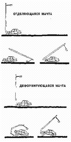 Устройство освещения может привести к тяжелым дорожно-транспортным происшествиям, связанным со столкновением с осветительными мачтами. Ежегодно в Норвегии полиция регистрирует около 400 происшествий с травматизмом, вызванные столкновением с осветительной мачтой или подобным препятствием (телефонные столбы). Степень тяжести ДТП при наезде на осветительные мачты может быть снижена за счет использования травмобезопасных мачт. Имеется 2 типа подобных мачт (Государственное дорожное управление, справочная книга 017, 1993). Это так называемые отделяющиеся мачты, монтирующиеся на фундаменте так, что при наезде на них они отделяются от фундамента, а также деформирующиеся мачты, имеющие такие детали, которые легко деформируются при наезде на них автомобиля.