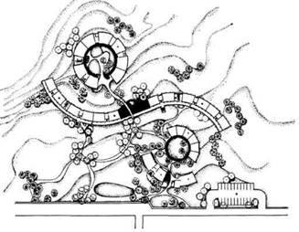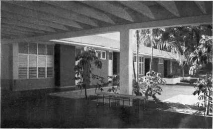 ВАЖНЕЙШЕЕ МЕСТО в социальных преобразованиях послереволюционной Кубы заняли организация и строительство учреждений образования и воспитания. Молодая республика остро нуждалась в собственных национальных кадрах. Героическими усилиями хотела покончить с неграмотностью. Стремилась воспитать новые поколения в духе социалистических идеалов. Учебно-воспитательные сооружения на долгие годы заняли на Кубе ведущее место в гражданском строительстве. В Гаване сеть новых школ и дошкольных учреждений начала создаваться сразу же после революции 1959 года. Прежде всего, в рабочих районах — в Старой Гаване, в центральных и южных частях города. Большое количество новых учебных заведений разместилось во дворцах, особняках, в бывших аристократических резиденциях в районах Мирамара и Кубанакана. Под школы были отданы и ненавистные казармы Колумбия, которые переименованы в школьный городок Сьюдад-Либертад. Одновременно начинает бурно развертываться строительство новых учебно-воспитательных комплексов. Охватив всю страну, эта область строительной деятельности в значительной степени коснулась и Гаваны, поскольку в столице была сосредоточена большая часть квалифицированных кадров преподавателей. Учебно-воспитательные комплексы строились для всех уровней: дошкольные учреждения, начальные и средние общеобразовательные школы, различные средние специальные учебные заведения и, наконец, комплексы высшей школы. Совершенно новой для кубинских архитекторов задачей явилось проектирование детских дошкольных учреждений. Эта тема вызвала огромный интерес, дала возможность продемонстрировать неистощимую выдумку и изобретательность, создала каскад самых разнообразных приемов построения этих сооружений. В первом микрорайоне Гаваны-дель-Эсте были спроектированы и построены семь детских садов — по одному в каждой из семи жилых групп согласно структурному делению жилой зоны микрорайона. Садики маленькие, на одну-две группы. В двухгрупповом детском саду два игровых зала (групповые комнаты) размещены диагонально по отношению к центрально расположенной приемной комнате. Их возвышающиеся над остальными помещениями объемы имеют оригинальные перекрытия в виде огромных чаш, консольно нависающих над стенами. В тени этих эффектных по форме перекрытий прячутся окна игровых залов. Сверху в чаши насыпана земля и посажены цветы. Это защищает помещения от перегрева, позволяет из окон близлежащих жилых