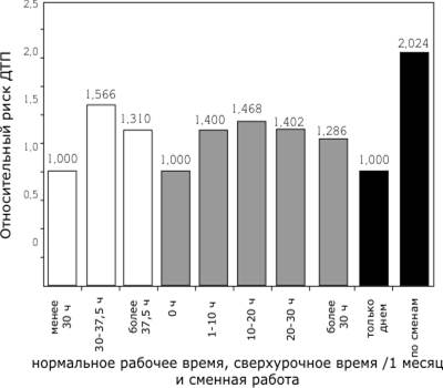 Рис. 6.11.3. Значение различных аспектов продолжительности рабочего времени водителей на их риск ДТП