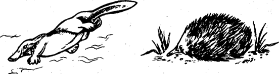 а б Рис.3.31. Качкодзьоб (а), єхидна (б). Сумчасті тварини. У сумчастих зародок спочатку розвивається в матці, проте зв'язок між зародком і маткою недостатній, оскільки плацента відсутня. Внаслідок цього малята народжуються недорозвиненими і дуже маленькими. Після народження вони вміщуються в особливу сумку на череві матері, де розташовані соски. Малята настільки слабкі, що спочатку нездатні самі ссати молоко, і воно періодично впорскується їм у рот під дією м'язів молочних залоз. Малята залишаються в сумці до тих пір, поки не стануть здатними до самостійного харчування й пересування. До сумчастих належать тварини, що мають різноманітні пристосування до умов життя. Наприклад, австралійський кенгуру пересувається стрибочками, маючи для цього сильно подовжені задні кінцівки; інші пристосовані до лазіння по деревах – ведмідь коала. До сумчастих належать ще сумчастий вовк, сумчасті мурахоїди, американський опосум, сумчаста білка та інші. Ці дві групи тварин належать до нижчих тварин-ссавців, а Плацентарні або справжні звірі – це найбільш високоорганізована група сучасних ссавців. Їх розвиток повністю відбувається в матці, причому оболонка зародка зростається із стінками матки, що й призводить до утворення плаценти, звідси й назва підкласу – плацентарні. Саме такий спосіб розвитку зародка є найбільш досконалим. Слід відзначити, що в ссавців добре розвинена турбота про потомство. Самки вигодовують малят молоком, зігрівають їх своїм тілом, захищають від ворогів, вчать шукати поживу і т.ін. Більшість ссавців належать до підкласу плацентарних, їх налічується понад 4 000 видів, що живуть у найрізноманітніших умовах: на сущі, у воді, на ґрунті, у повітрі. Вони мають для цього різноманітні пристосування, особливі риси як у зовнішній, так і внутрішній будові, у засобах пересування і добування поживи, місці і способі життя, засобах харчування і значенні для людини. Ссавці надзвичайно різноманітні за будовою та розмірами. Найменші з них (землерийка – крихітка, та білозубка – маля) мають вагу 2г, а велетенські (синій кит) більш як 120 тон. Враховуючи вищезгадані ознаки, плацентарні ссавці поєднані у велику кількість рядів. Найбільш широко розповсюджені представники таких рядів, як комахоїдні, рукокрилі, гризуни, зайцеподібні, хижаки, ластоногі, китоподібні, парно- і непарнокопиті, хоботні і примати та ін. Порівняльна характеристика підкласів подана в таблиці 3.7. Значення й охорона ссавців. Значення ссавців в природі залежить, насамперед, від їх чисельності. У наш час великі звірі зустрічаються рідко, тому вони не справляють суттєвого впливу на природні угруповання (ценози). У той же час ссавці середніх і дрібних розмірів бувають настільки численні, що відіграють у природі значну роль. Так, багато травоїдних ссавців (наприклад, гризуни) поїдають масу рослин та їхнього насіння і в той же час служать джерелом харчування для деяких хижаків. Окремі ссавці сприяють розповсюдженню плодів і насіння, впливають на поновлення рослинності. Деякі хижаки, поїдаючи трупи, виконують санітарну роль. Різноманітна роль ссавців у житті людини. Багато з них служать об'єктами промислу, поставляючи людині м'ясо, жир, хутро, технічну сировину. Сільськогосподарських тварин розводять для одержання продуктів харчування, сировини для промисловості. Разом із цим серед сса