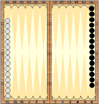 По 15 шашек разного цвета у каждого игрока. Все эти шашки надо привести в дом, собрать туда все 15, а потом уже выводить с доски (выбрасывать). Движение против часовой стрелки.
