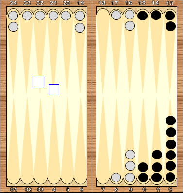 Перейти в меню блоков Перейти в начало. Итак: блок у чужой руки был марсовым. Теперь рассмотрим типично ойновый блок. Но, сначала немного лирики. Блоки, их построение, преодоление, порядок отхода из блока, выбор из нескольких блоков и контригра "блок против блока" – самая сложная тема в вопросах применения тактических приемов в игре в длинные нарды. Тема эта очень большая, очень не простая, требующая серьезных вычислений и, соответственно, для новичков и даже продвинутых игроков зачастую не очень понятная. В этой теме я предлагаю читателю попробовать «прощупать» глубину темы «блоки» на довольно-таки простом с виду, но очень поучительном примере. Чтобы ход мыслей был понятнее, для начала вспомним простые и понятные, хорошо известные большинству игроков цифры: Всего возможных бросков зар 36. Но в нардах есть специфика: броски 2:1 и 1:2 для игрока в длинные нарды абсолютно одинаковы. Поэтому, если свести в таблицу РАЗНЫЕ броски, то их будет 21. Эти две цифры часто путают.