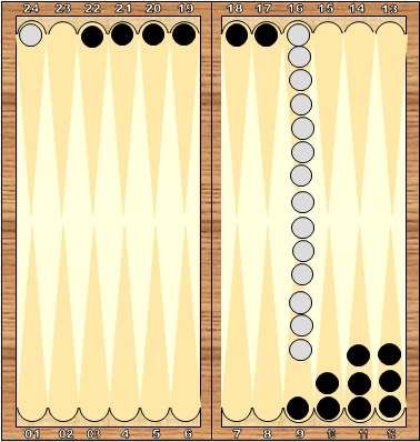 Рассматриваемая позиция очень характерная и очень поучительная. Дело в том, что показанными событиями мотив контригры в той позиции не заканчивается! Теперь очередь белых искать контригру и пытаться разрушить, казалось бы, бетонный блок черных. Как здесь надо грамотно играть дальше за белых? Далее план игры в последовательности убывания приоритета. Т.е. первым – самое главное. Вторым второе по значимости и т.д. - Замкнуть блок, поставив шашку в пункт 21; - Занять пункт 9 (возможно, это даже важнее, чем достроить блок 16-21); - При первой же возможности выстроить блок 19-24; - Сразу же освободить пункт 18, а 16 и 17 держать. Зачем все это? Во-первых, не тратить зря запас ходов шашек в пунктах 1,3 и т.д. в 1-2 четвертях. Во-вторых, открыв черным ход18, белые могут надеяться, черные при бросив 4:4, вынужденно откроют пункт 14 или при броске 3:3 откроют пункт 13. Блок будет «сломан». У белых появится шанс прорваться к своему дому, и марс черным гарантирован. На самом деле, даже просто несколько бросков с четверками и тройками «поломают» блок черных. Конечно, это может и не сработать. Пара больших кушей, например 6:6 или 5:5, а потом 4:4, могут сломать блок белых, в том числе блок 19-24. Но, все же, контригра – это серьезное повышение шансов на выигрыш.