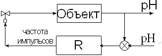 Стабилизация параметра pH является одной из наиболее важных и сложных задач при автоматизации процесса биосинтеза. Ввиду нелинейной характеристики показателя pH, даже при малых количествах поданного титранта, параметр может выйти за пределы технологических уставок. Поэтому предлагается следующая схема автоматизации: 10% раствор NaOH будет подаваться маленькими порциями при помощи мембранного клапана, частота выдачи этих порций (импульсов) пропорциональна выходу с обычного ПИ регулятора, на вход которого подаётся разбаланс между текущим и заданным значением величины параметра pH. Такое импульсное регулирование не позволит показателю pH скачкообразно выйти за пределы технологических уставок [6,7]. Опрос датчиков pH следует производить с периодом 5 с когда не производится корректировка pH подачей титранта и с периодом 0,5 с, когда подаётся раствор NaOH.
