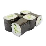 Ингредиенты: · 1 лист нори размером 10*7 см · 100 г риса · 500 мл рисового уксуса · 40 мл мирина · 100 г сахара · 1/4 лимона · 10 г водорослей комбу · 30 г огурца · Рис промыть до тех пор, пока вода не станет прозрачной. Высыпать в кастрюлю и залить холодной водой так, чтобы вода покрывала рис на 2 см, довести до готовности. Рисовый уксус, соус мирин, сахар, сок лимона и водоросли комбу перемешать и поставить на слабый огонь. Томить 15 - 20 минут, не доводя до кипения. Горячий рис заправить полученным соусом и остудить. На лист нори выложить рис, оставляя небольшой нахлест. Огурец нарезать тонкими длинными полосками и выложить на рис. Сформировать ролл квадратной формы и разрезать на 6 равных частей. · Время приготовления 50 минут.