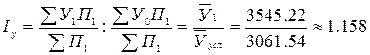 Таким образом, за счет изменения структуры стада средняя продуктивность коров увеличилась на 93.74 кг или на 3.2 %. Проверяем относительную взаимосвязь средней продуктивности по факторам: