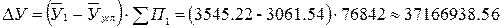1.195 = 1.158∙1.032. Абсолютная взаимосвязь абсолютной урожайности по факторам: