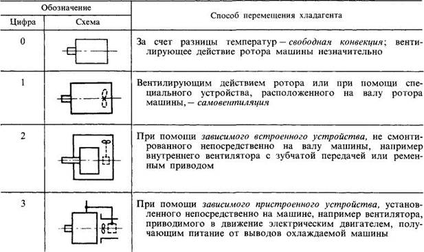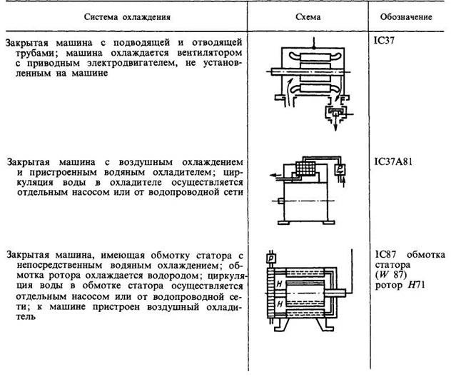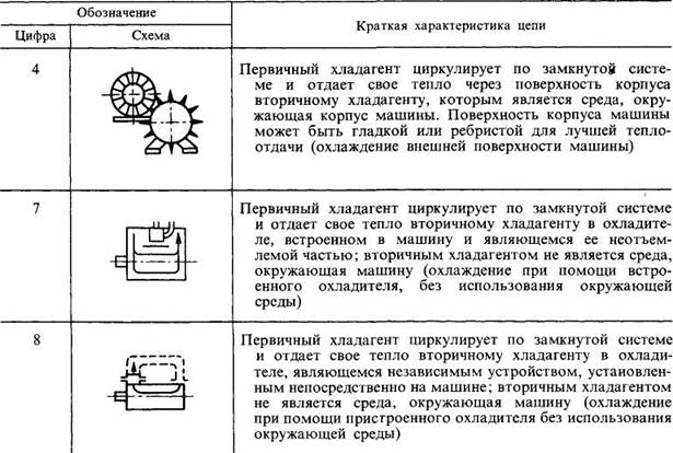 Таблица 3.5. Примеры условных обозначений систем охлаждения электрических машин