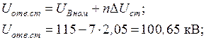 Действительное напряжение не соответствует желаемому, следовательно необходимо осуществить регулирование. 5. Напряжение ответвления, при котором на шинах НН ПС будет поддерживаться напряжение 10,5 кВ, равно, кВ: