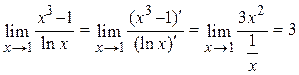 Подстановка предельного значения аргумента приводит к неопределенности вида , т.к. и . Производные функций и существуют, причем . Наконец, существует предел отношения производных . Поэтому применимо правило Лопиталя: