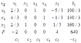 Это решение уже лучше. Следующий шаг начнем с выбора нового базиса. Примем переменные