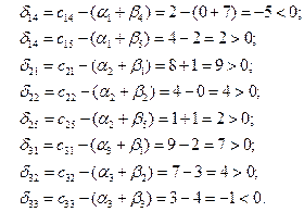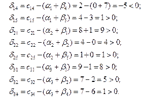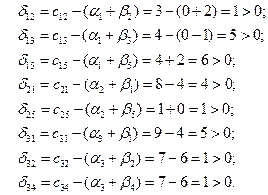 Запишем оценки для пустых клеток и проследим выполнение неравенства