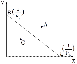 Из уравнения бюджетной линии следует, что угол наклона бюджетной линии к оси X будет Любая комбинация, изображенная точкой, находящейся на BL, доступна потребителю. Любая точка, расположенная вне графика (например, A), изображает комбинацию товаров, недоступную потребителю. Любая точка, расположенная внутри графика (например, C) означает, что не весь доход расходуется на потребление.