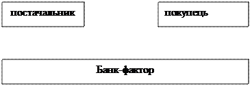Приклад 3. 5.03.2009 р. банк уклав з своїм клієнтом підприємством «Балта» договір про надання кредиту овердрафт на суму до 50000 грн. Максимальний термін користування коштами за овердрафтом становить 60 днів. Кредит надається без застави. Процентна ставка за користування овердрафтом становить 25 % річних. Метод обчислення кількості днів при визначенні суми процентів: факт/факт. 18.03.2009 р. підприємство «Балта» подало в банк платіжне доручення на перерахування 35000 грн. фірмі, яка обслуговується в іншому банку. При цьому на поточному рахунку підприємства «Балта» було лише 20000 грн. 31.03.2009 р. на користь підприємства «Балта» поступили кошти у сумі 28000 грн. від фірми «Акорд», яка має рахунок в Укрсоцбанку. За рахунок коштів, що поступили, банк погасив заборгованість підприємства «Балта» за кредитом овердрафт та нараховані відсотки. Зазначені операції за кредитом овердрафт супроводжуються такими бухгалтерськими записами: • укладення договору про надання кредиту овердрафт 5. 03. 2009 р: Дт 9129 50 000 грн. Кт 9900 50 000 грн. • перерахування банком на основі платіжного доручення 35 000 грн. з поточного рахунку клієнта в інший банк: Дт 2600 35 000 грн. Кт 1200 35 000 грн. Сума наданого кредиту овердрафт становить 15 000 грн. (35000 — 20 000), на які зменшується зобов’язання з кредитування, що супроводжується такою проводкою: Дт 9900 15 000 грн. Кт 9129 15 000 грн. Нарахування банком процентних доходів за кредитом овердрафт 31.03.2009 р. у сумі 133, 56 грн. (15000 грн. х 0,25/365 дн. х 13 дн.) відображається проводкою: Дт 2607 133,56 грн. Кт 6020 133, 56 грн. При поступленні коштів на рахунок клієнта 31.03.2009 р. та погашенні заборгованості за кредитом овердрафт і нарахованими відсотками виконуються такі проводки: 1) Дт 1200 28000 грн. Кт 2600 28000 грн. 2) Дт 2600 133,56 грн. Кт 2607 133,56 грн. На кінець дня 31.03.2009 р. залишок коштів на рахунку підприємства «Балта» становитиме 12866, 44 грн. (28000 –15000 –133, 56). Факторинг — це придбання банком (чи фактор_фірмою) права вимоги щодо виплат за фінансовими зобов’язаннями, що виникли між контрагентами в процесі реалізації продукції (товарів, робіт, послуг). У банківській факторинговій операції беруть участь 3 сторони: • дебітор — покупець товарів чи послуг клієнта банку; • клієнт, який продає банку свою дебіторську заборгованість; • банк — фактор (банк, який купує дебіторську заборгованість клієнта). Взаємовідносини між банком_фактором та клієнтом_постачальником регулюються угодою про факторингове обслуговування. Учасники, зміст та послідовність здійснення факторингових операцій зображено на рис.1.