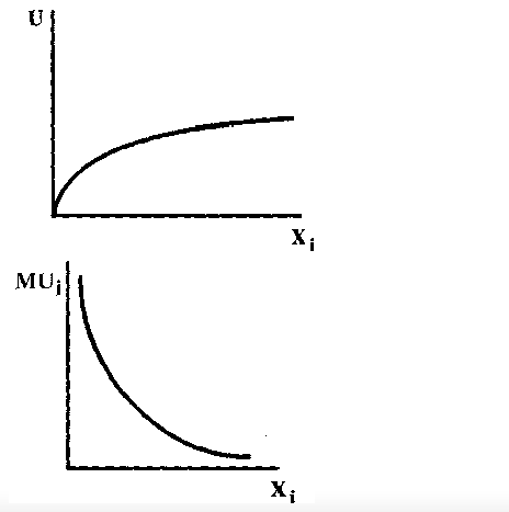 Принцип убывания предельной полезности в потреблении (законы Госсена). Ученый описал рациональные правила индивида, стремящегося извлечь максимум полезности из своей хозяйственной деятельности. Первый закон Госсена сформулирован следующим образом: во-первых, в одном непрерывном акте потребления полезность последующей единицы блага убывает; во-вторых, при повторном акте потребления полезность каждой единицы блага уменьшается по сравнению с ее полезностью при первоначальном потреблении. Значение первого закона состоит в том, что он позволил различать общую полезность некоторого запаса блага и предельную полезность данного блага; вывести аксиому убывания предельной полезности, лежащую в основе достижения потребителем состояния равновесия, т.е. такого состояния, при котором происходит извлечение максимума полезности из имеющихся в его распоряжении ресурсов. Общая полезность (TU) определяется как сумма полезности, которую получает потребитель от потребления данного количества товара в течение определенного периода времени. Total Utility = TU = f(Q, предпочтения). Итак, принцип убывающей предельной полезности вовсе не является абсолютным, но область его применимости все же достаточно обширна, если соответствующие условия соблюдаются. Проиллюстрировать действие данного принципа можно на двух соответствующих друг другу графиках общей и предельной полезности: