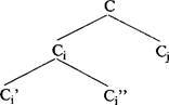 Порядок CjCj оптимален в том случае, если вершиной Cj является Cj”, а не Cj’. Но в таком случае и составляющая С^ должна распознаваться по своей правой периферии, иначе оптимальным не будет порядок Cj’Cj” — если Cj’ начинается не с зависимого, а с вершины, то сферу идентификации составляющей Cj «загромоздит» ветвящееся зависимое в Cj’. Итак, левое ветвление Cj оптимально при условии левого ветвления его зависимого Cj’. В случае правого ветвления (176) рассуждения совершенно аналогичны: