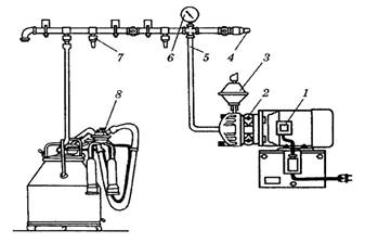 а) вакуумний трубопровід б) регулятор вакууму + в) манометр г) колектор Л-1, с.176