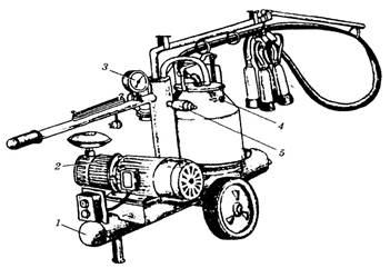 а) маніпулятора доїння б) пересувної установки для доїння корів + в) вакуумної установки г) насосної установки Л-1, с. 192; Л-2, с. 352