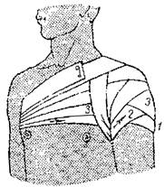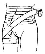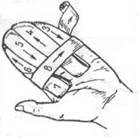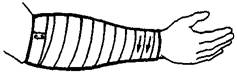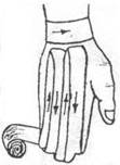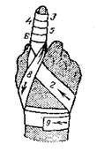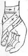 6. Колосовидная повязка накладывается на первый палец кисти, плечевой, тазобедренный суставы. Рисунок повязки напоминает колос.