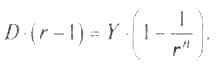 Величина кредита (D) равна сумме всех дисконтированных аннуитетов, т.е. является современной величиной всех срочных уплат. Исходя из этого можно записать: