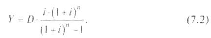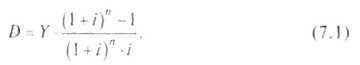 Условиями кредитного контракта может предусматриваться погашение долга равными срочными уплатами в конце каждого расчетного периода. Каждая срочная уплата (Y) будет являться суммой двух величин: годового расхода по погашению основного долга R и процентного платежа по займу I: