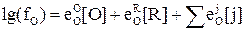 Коэффициенты активности fR и fO можно оценить при помощи параметров взаимодействия первого порядка с учетом принятого стандартного состояния: