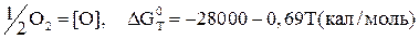 Константа равновесия данной реакции связана с изменением свободной энергии образования оксида известным соотношением