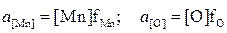 В растворах Fe–Mn–O концентрация кислорода мала, поэтому в соотношениях (67) произведениями С учетом этого, константа равновесия реакции раскисления марганца будет иметь вид